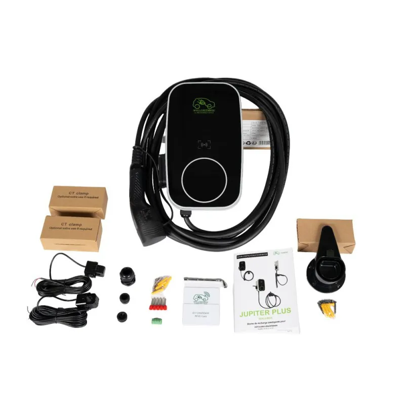 La borne JUPITER double prise offre jusqu’à 22 kW de puissance, RFID, protection 30 mA AC + 6 mA DC, O-Pen, protection surtension/sous-tension, surchauffe. Idéale pour particuliers et entreprises, elle permet une recharge rapide, sûre et connectée.